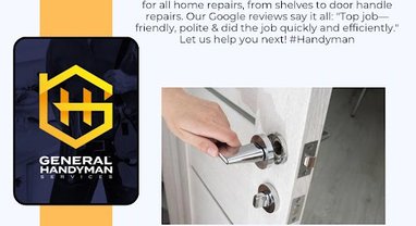 Tackling your to-do list! General Handyman Services for all home repairs, from shelves to door handle repairs. Our Google reviews say it all: "Top jo…